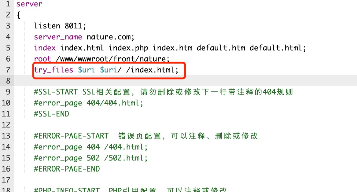 try_files $uri $uri/ /index.html;
