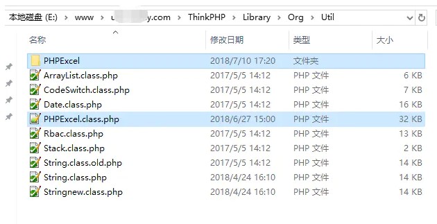 复制PHPExcel\Classes里的文件到thinkphp框架目录:ThinkPHP\Library\Org\Util,将文件PHPExcel.php修改为PHPExcel.class.php,thinkphp框架格式,方便框架引用。如图: