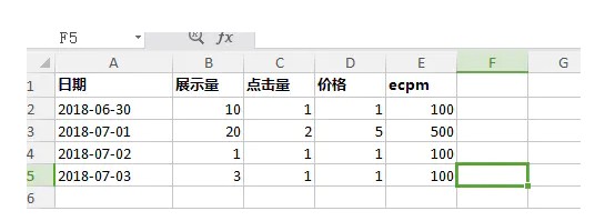 ['日期','展示量','点击量','价格','ecpm'],