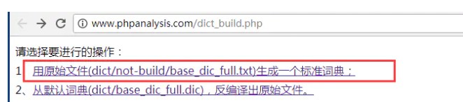2、运行此文件dict_build.php, 看到两个选项,我们需要生成新的词典
