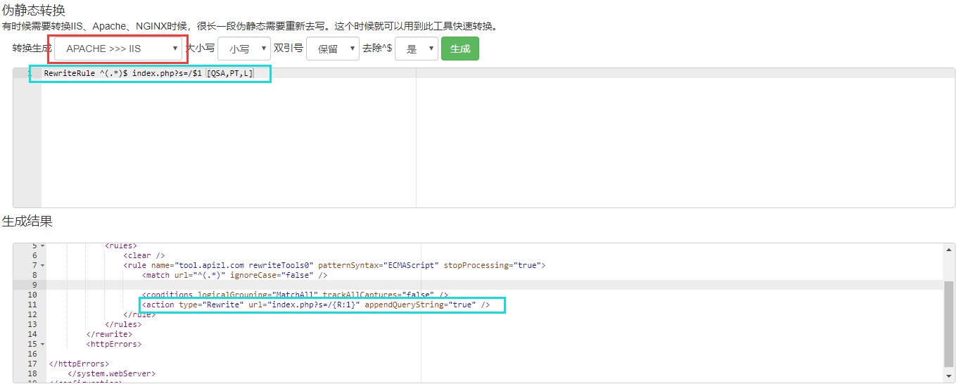 如果伪静态太多,一个个手写也是比较麻烦的。我们使用转换工具,可以减轻部分转换伪静态重复工作。